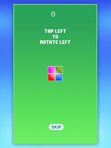 The game play is very challenging. The centre square has 4 small square parts with a specific color code you can rotate the square by tapping the screen. Left tap will rotate it left and right tap will rotate it right by 90 degree. When the game starts small squares will come from corners rotate the centre square so that small squares coming from corners match n merge to the centre squares same color code.