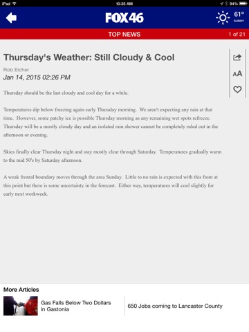 News doesnt wait, why should you? Take FOX 46s app everywhere you go! Our app connects you with top stories in Charlotte and surrounding areas — complete with breaking news alerts, live video, and real-time weather forecasts.