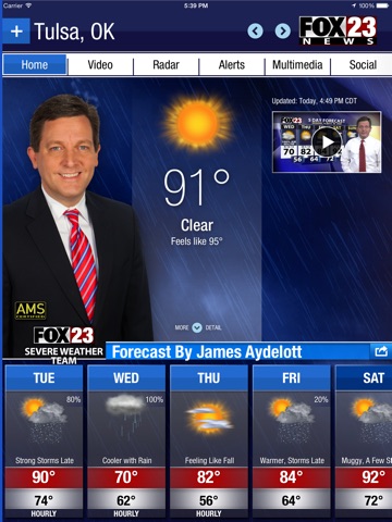 FOX23’s Weather App keeps you in touch with the FOX23 Weather team and the following information: