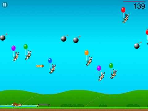 The rabbits in Freds field tease him for his big tail. Help Fred out by guiding him through the sky and hitting as many rabbits as possible! Use items like trampolines, rockets, and springs to gain speed and keep flying. Avoid the ground and bombs; they slow Fred down and can make him crash. Unlock new items by completing achievements and use popped balloons to get upgrades from the Pop Shop.