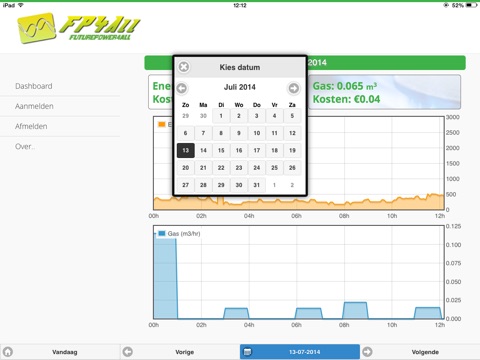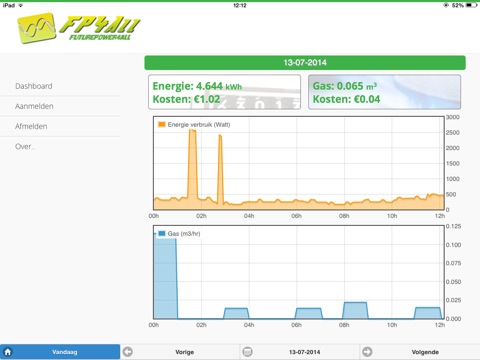 2. De analyse website. Hier kunt u uw actuele en historische verbruik analyseren en bekijken.