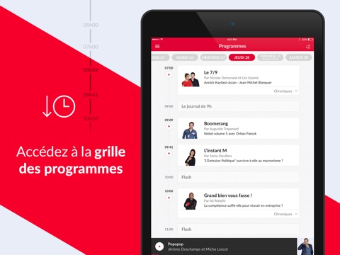 - Accédez à la grille des programmes radio, aux invités du jour et sujets des émissions