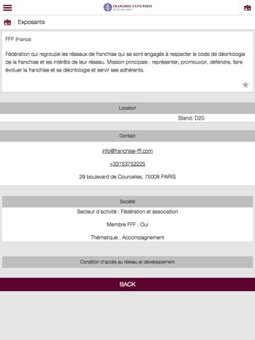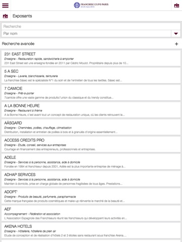 L’application Franchise Expo Paris vous permet d’avoir sur votre mobile l’essentiel du salon. Retrouvez la liste des exposants et leurs coordonnées, le programme des conférences, le plan du salon…
