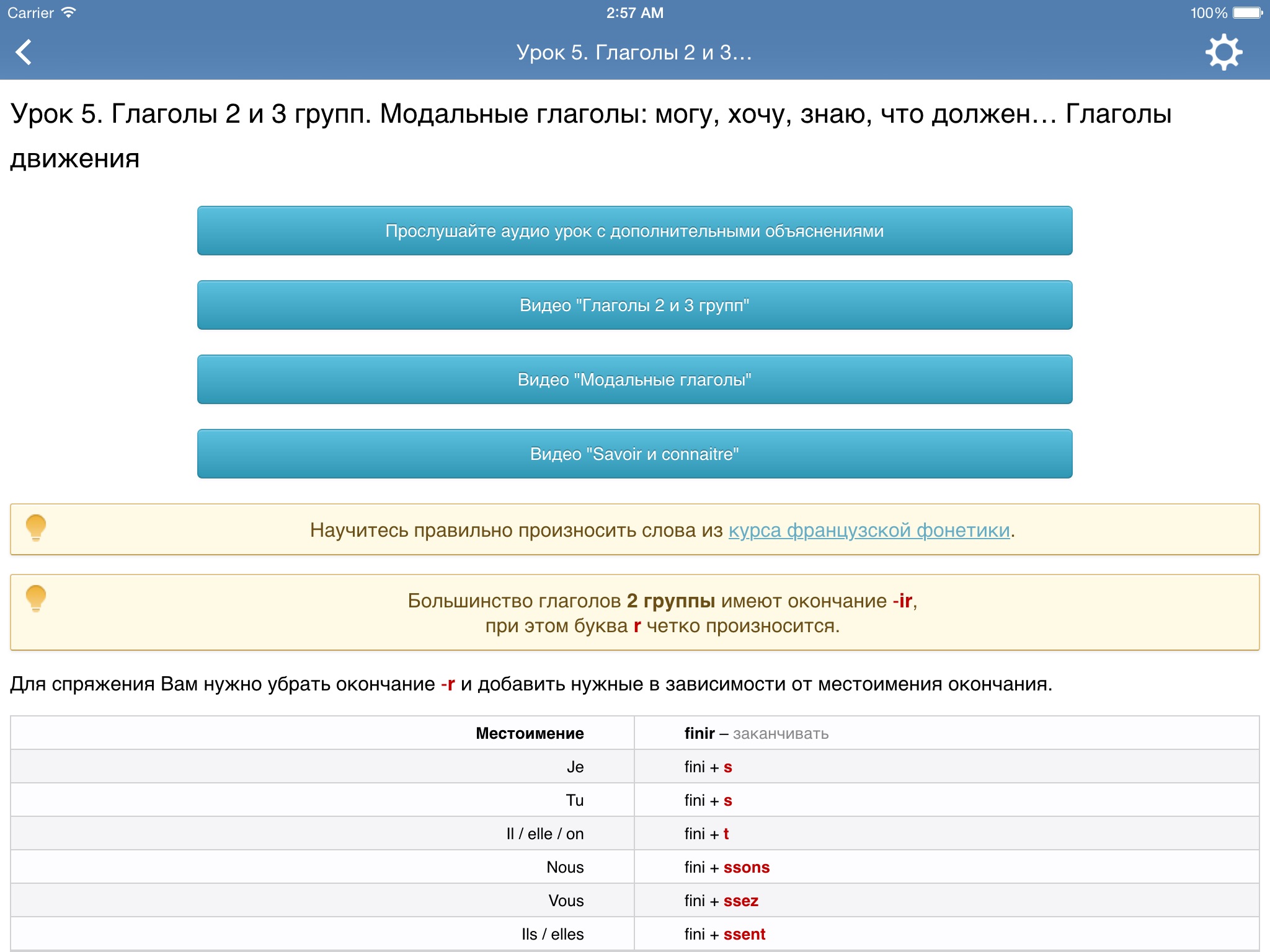 - аудио-материалы с объяснениями уроков и упражнений