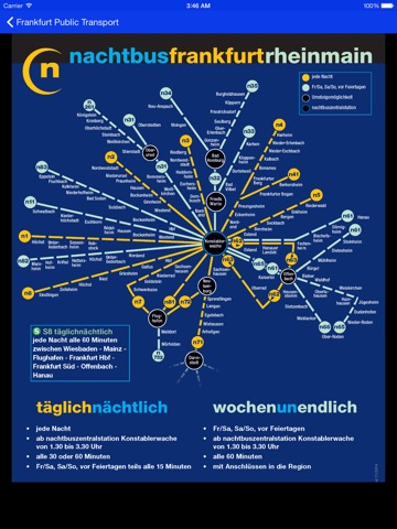 Frankfurt Public Transport, your own iOS app with various public transport network maps of Frankfurt City. An App that makes your travel easier by providing U-Bahn (Metro / Subway / Underground) and S-Bahn (Train) , S-Bahn and Regional Trains, Tram U-Bahn and S-bahn, Airport Busline and Night Bus (Night Line) maps of Frankfurt. You can plan your further journey easier as you have all connection maps in your pocket.