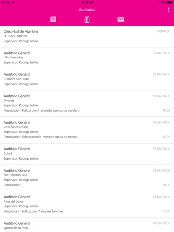 - Notificaciones sobre Auditorías realizadas a los locales, Mensajes internos nuevos, Novedades, etc.