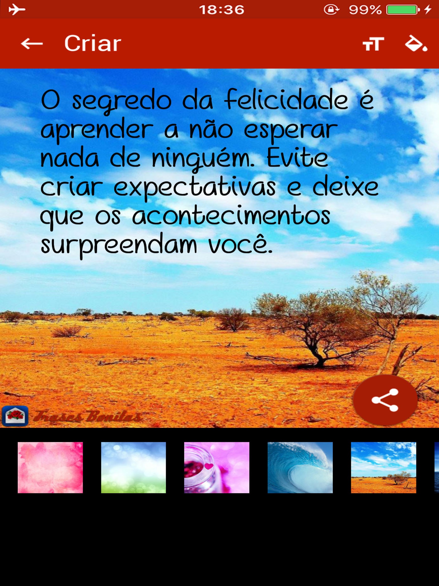 O aplicativo "Frases Bonitas" permite que você personalize a sua frase bonita, com uma frase e uma imagem de fundo.