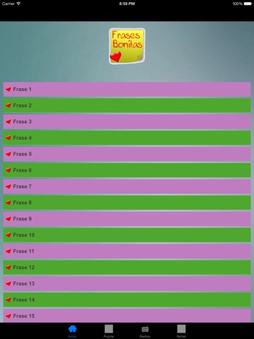 La aplicación Frases Bonitas contiene las mejores frases sobre amistad, vida, sentimiento, felicidad, valentía, etc. Todas estas frases seleccionadas para ser visualizados correctamente en tu equipo.