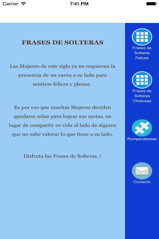 También posee una galería con frases de soltera graciosas que podrás guardarlas en tu celular y así poder compartirlas en tus redes sociales favoritas.