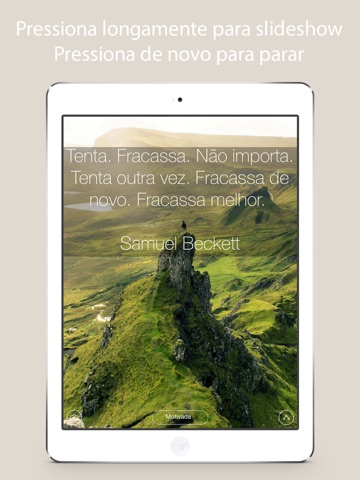 Achou a frase ideal? Pressione o écran por dois segundos para receber uma foto mágica que ilustra a frase.