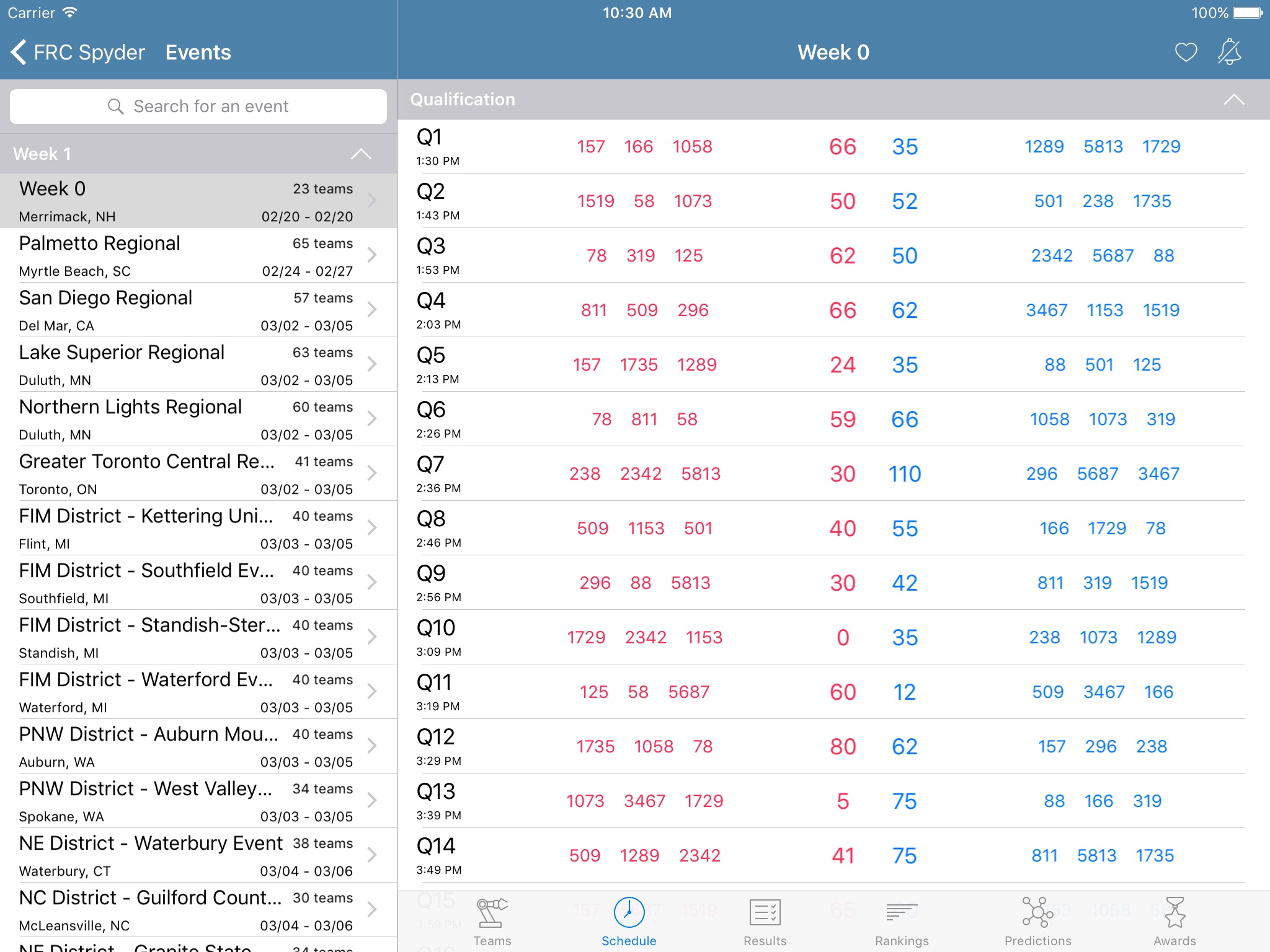For competitors, FRC Spyder provides quick access to the event schedule, rankings, team lists, awards, and more. Parents, family, and friends can access match results and alerts to follow along at home.