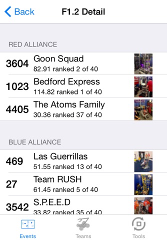 FRC Tracker provides event results and team information for the 2015 FIRST Robotics Competition. Teams can share robot photos for scouting.