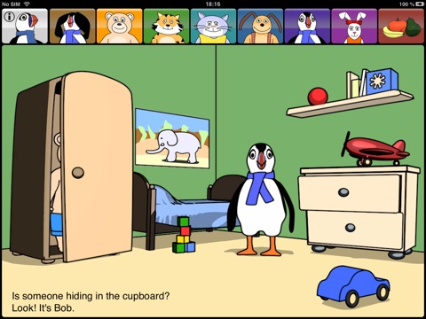 The adventure with Fred and his friends are interactive picture books. The adult reads and the child points and interacts to discover more. You can use the app like a book, going through the pages in sequence, or just view the pages your child likes best.