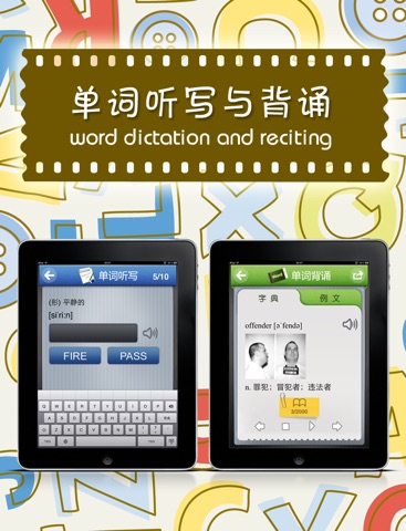 它可以让你的iPhone/iPad/iTouch瞬间变成一部强大的多功能英语学习机!从此, 您就可以随时随地用手机学习外语, 无论走到哪里, 都可以利用闲暇的时间把手机拿出来背几个单词, 使你能在短时间内迅速提高词汇量!您还可以利用软件中“生词本”的功能把所学英语课本的单词添加进去, 随时拿出来背, 从此再也不用成天拎着书本和电子词典学英语了, 尤其是不用带厚厚的英语词典学习了。