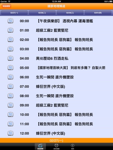 1. 顯示現正播放的節目列表,讓您對目前進行中的節目一目瞭然。