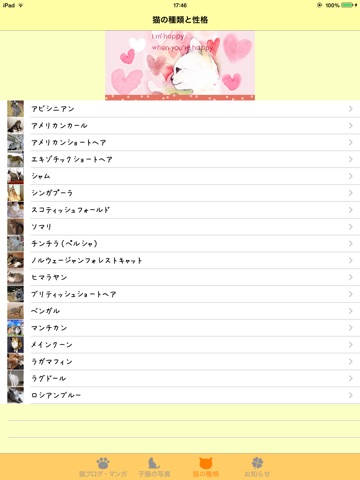 猫種ごとの説明とその種類の猫が載っているブログが見られます。
