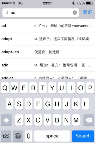* 单词搜索,快速查词。