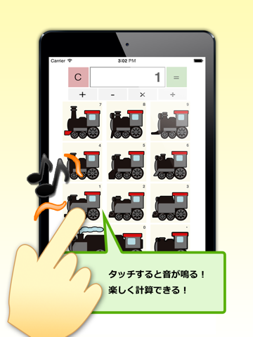 SL蒸気機関車のイラストと汽笛の音で楽しく遊びながら計算に慣れていくことができる電卓です。