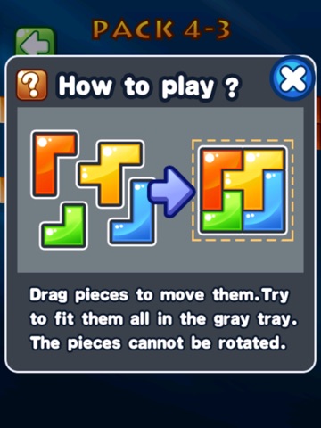 Block puzzle has a simple rule. You have to move shapes the target place on the middle of screen. Target place has to be filled by shapes. Some levels have more than one solution. The rule is simple. Just fill the target place with shapes to solve puzzles.