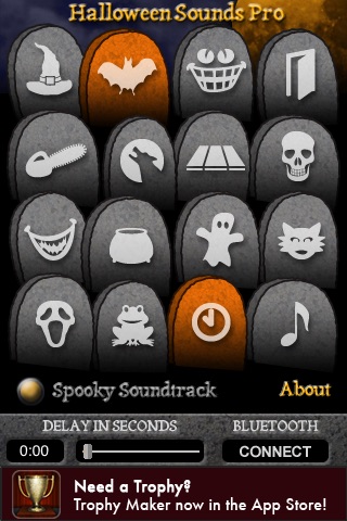 Plus you get all the functions of Free Halloween Sounds. 15 spooky sounds and Spooky Soundtrack which plays a creepy soundtrack and adds scary sounds on top of it. The perfect soundtrack for handing out treats, or great mood music for a costume party.
