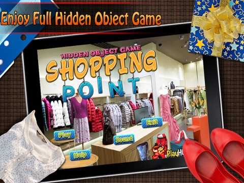 PlayHOG presents Shopping Point, one of our newer hidden objects games where you are tasked to find 5 hidden objects in 60 secs. Your score is tied with a multiplier that increases as you find the right hidden objects, but beware, make a mistake and it will reset to 1. Try to get the highest score as you try to find all 400 hidden objects in Shopping Point.