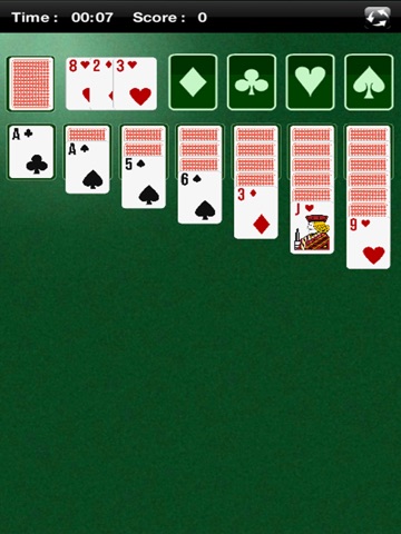 In Free Klondike Solitaire, the player attempts to sort a 52 card deck by suit and in order into four piles of cards known as foundations. Cards can be moved between the columns, or to the foundations. The cards in the columns must be built down (from King to Ace) alternating color. When the player gets stuck he can click on the deck in the top left of the game screen. This will deal 3 cards at a time onto the waste pile.