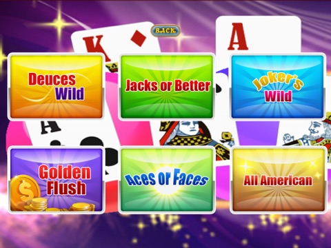 Jacks or Better, Double Double Bonus, Acey Deucey, Aces & Faces, Super Aces, All American