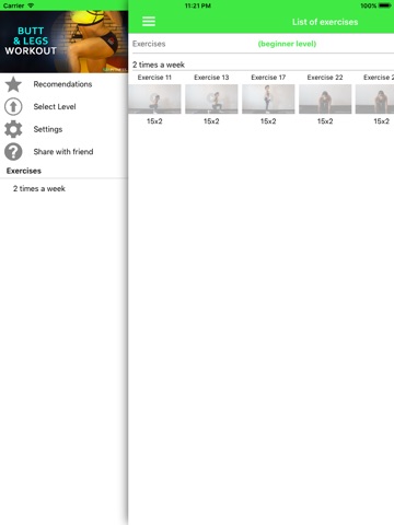 Our app presents three workout programs for buttocks, legs, and thighs: one for beginners, one for intermediate, and one for advanced users (only available in the paid version). A specially tuned training program has been designed for each challenge level, with varying numbers of repetitions in a set, durations of rest periods between sets, and numbers of sets in the workout. By following all of the recommendations that accompany each video, you can quickly banish cellulite and make your thighs and buttocks supple.