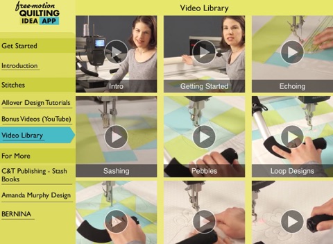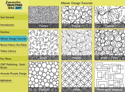 In this universal iOS app, Amanda helps beginners take the guesswork out of free-motion quilting with 16 fresh allover designs. Each design includes step-outs and animated videos showing you exactly how to create these stunning and practical motifs. Several of the stitches are explained even further with high-quality video tutorials featuring Amanda. This must-have reference app also includes a video library, making it easy to learn from Amanda at your own pace. Download the app to both your iPad and iPhone so it’s with you any time you want to improve your skill set.