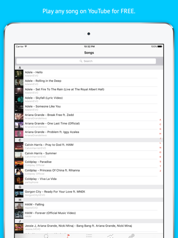Free Music is the ultimate app to let you stream music for FREE. You can stream and organize your entire music library using Free Music. With content provided directly from YouTube, you can access millions of songs that you can add into your own library. You can do all of this without having to purchase tracks or albums.