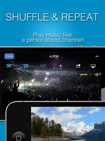 - Multisource music video streaming from YouTube, iTunes and local music