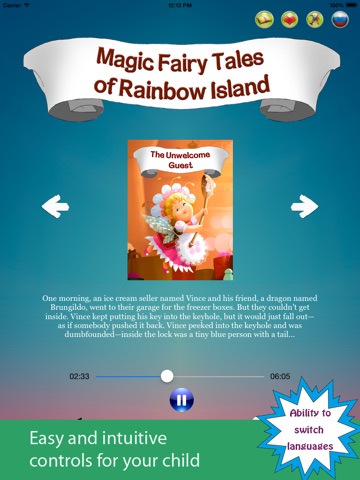 In this app you will get SIX Brand NEW original fairy tales with professional voiceovers in TWO languages.