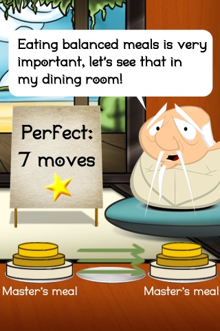 MEALS Game Mode: Balance your diet in the Hanoï room! Move foods from left to the right position.... without putting a large one on a smaller one! Some levels are balanced meals made by Master Ki, in other levels you have to select the right foods to make your own balanced meals!