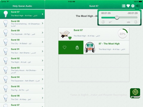 => You can listen to the Quran even if your Iphone or your Ipad is idle.