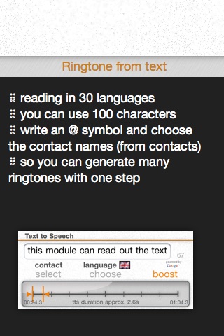 That’s not all you can do with Ringtone Wiz, either. The app has an integrated text-to-speech function that works in 35 languages! Type in up to 100 characters, hear it play back as speech then choose which recipients from your contacts will have that ringtone. Go ahead and pick as many as you like to get that ringtone, all at the same time, this application offers unlimited freedom.