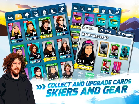 Collect powder, race and freestyle skier cards for your squad. Start with single player mode, beat your best scores and times, then take your team to competitive PvP skiing events.