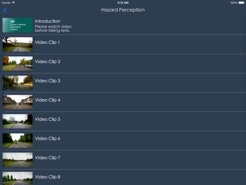 2. Hazard Perception Video Test : Play the hazard perception game with auto-replay and with visual display when a hazard starts to appear.