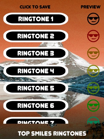 Top Smiles Ringtones features over 40 of the top ringtones at the tip of your fingers. You have the easy and simple ability to listen to sounds before downloading them as ringtones straight from the application without the hassle of internet.
