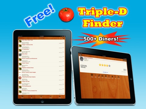 FyTeks Triple-D Finder is a Fan-Based App designed to help you locate all of the restaurants featured on Food Network Show: Diners, Drive-ins & Dives. Upgrades include the ability to add your own locations, view available receipes, and maps.