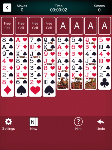FreeCell Solitaire is played with a standard 52-card deck. The goal of the game is to move all the cards to the four Foundation piles (located in the top left) and build each suit up from Ace to King. Only the cards at the bottom of the columns or in the free cells can be moved. A free cell can contain no more than one card at a time.
