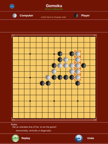 + Gomoku, just like tic tac toe, who succeeds in placing five marks(white stone or black stone) in a line wins the game.