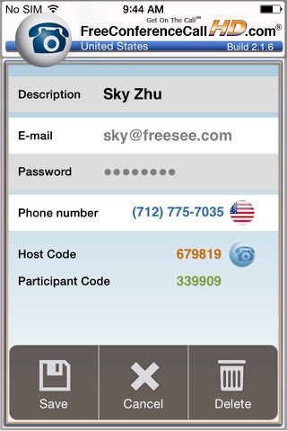At first I was distraught by this app. It kept crashing. Apparently you have to press sign in first (button on bottom left) before anything else. Id like to see a pop up for pressing elsewhere instead of the app simply crashing. The app is pretty good. Id like to see more of the things available online available on the app as well. It is certainly a start. Thanks Free Conference Call HD!