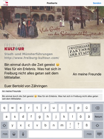 laden Sie sich die App auf Ihr Smartphone oder Tablet und fragen Sie bei der Tourist Information am Rathaus nach der nächsten E-Tour von Freiburg Kultour. Freiburg Kultour ist offizieller Partner der Stadt Freiburg.