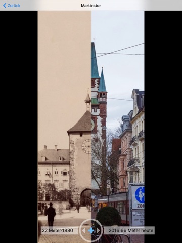 Lassen Sie sich die Altstadt Freiburgs aus einer ganz neuen Perspektive von unseren zertifizierten Stadtführern zeigen und erklären. Dank der App können Sie auf Ihrem Smartphone oder Tablet Bilder aus vergangenen Zeiten sichtbar machen und im Detail Veränderungen im Stadtbild vergleichen. Wechseln Sie zwischen Bildern aus verschiedenen Zeiten, die Sie auf Ihrem Smartphone oder Tablet passgenau übereinander legen können.