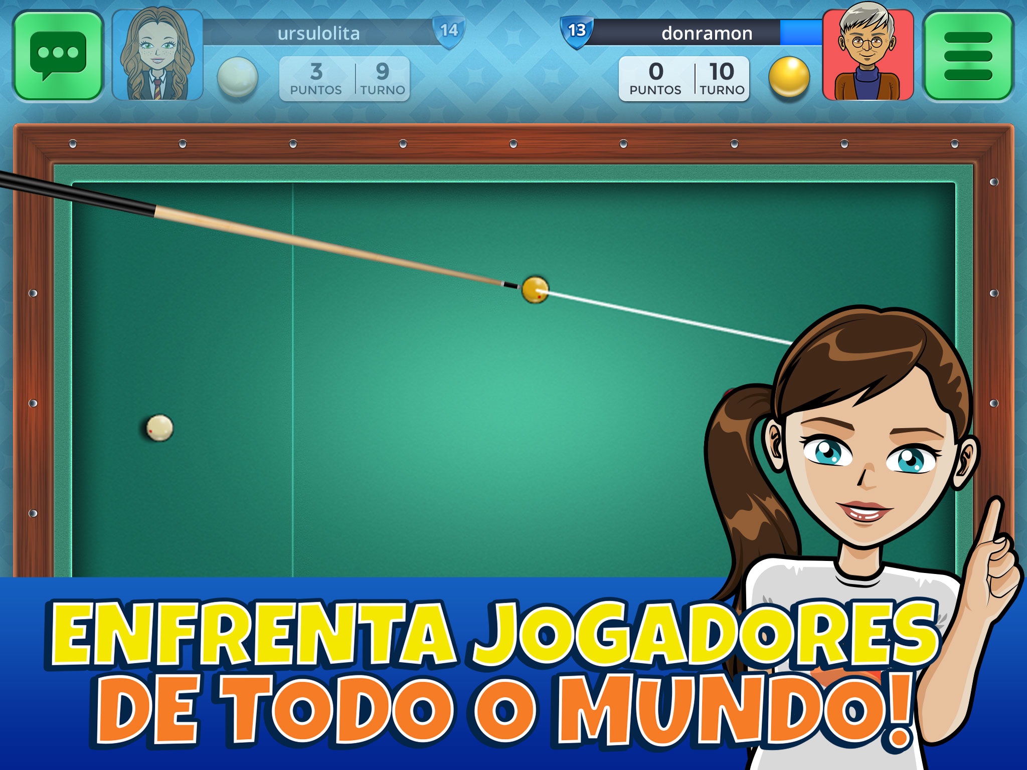 • It’s multiplayer, so you can challenge your friends and other Casual Arena carambole billiards players.