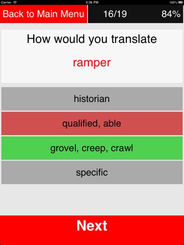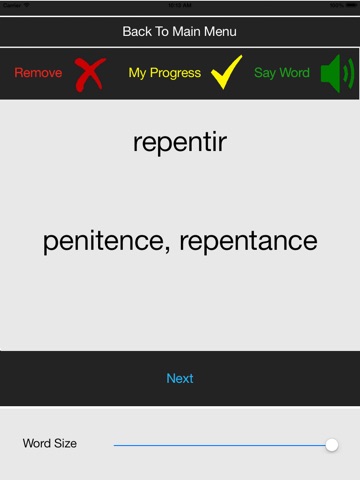 This app will effectively help you to boost your French vocabulary and will teach you to pronounce French words correctly. It offers three levels of learning: basic, intermediate, and advanced. This gives you an opportunity to start learning on your level. Each level offers 2000 words to learn. After finishing all three levels you will know as many as 6000 distinct words - this is more that enough to be confident in a language. On every level your task is to learn all 2000 words. It should take no more that several showings of a word before your mind recognizes it, and several more before you firmly remember the meaning of the word. So the more you use the program, the faster you will learn all words. When you use this app for learning, the words will be displayed to you one by one in a random order, so your memory will stay focused only on memorizing words, and not memorizing word ordering as well. This will lead to a much more effective learning process. You can listen to the correct pronunciation of every word or phrase that the app offers. You will be able to remove the words that you have already learnt or knew, so they will not be displayed again, which will give you more time to work on the words which you have not quite learnt yet. You can always check how many words you have already learnt, how many are left, and test your knowledge to ensure that you are on the right learning track. At any time you will also be able to restore all words that you have removed. All of this will help you to learn the number of words, that is enough to speak a language well, very fast.