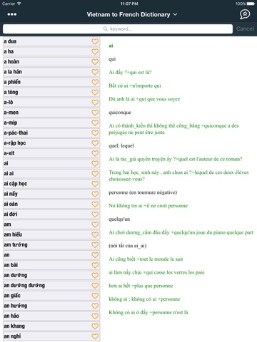 With over 47,000 French - Vietnamese words and nearly 40,000 Vietnamese - French, this is the most sufficient free French - Vietnamese, Vietnamese - French offline dictionary with words updated regularly in term of quantity of words and their meaning.
