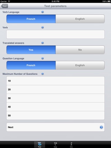 Youve tried the rest, now try a full featured French and English verb conjugation training application. None of this tap to display answer or tap "Yes" if you got it right shenanigans. The Verb2Verbe Verb Trainer will test your knowledge of French conjugations to their limit.