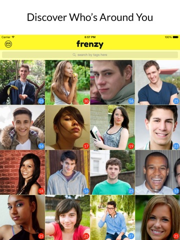 Discover whos around you with Frenzy for Snapchat, Kik, Instagram, Facebook, Twitter, phone, and email. Filter by age and geographic location. Searching by interest makes it a breeze to get a group together for board games, find a gym or study partner, or make new friends in your neighborhood.