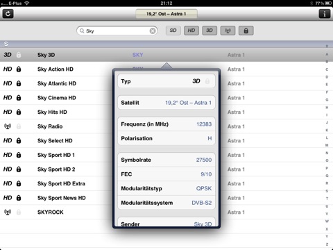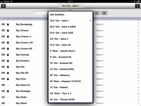 19,2 Grad Ost - Astra 1 (in der Basisversion gratis enthalten)